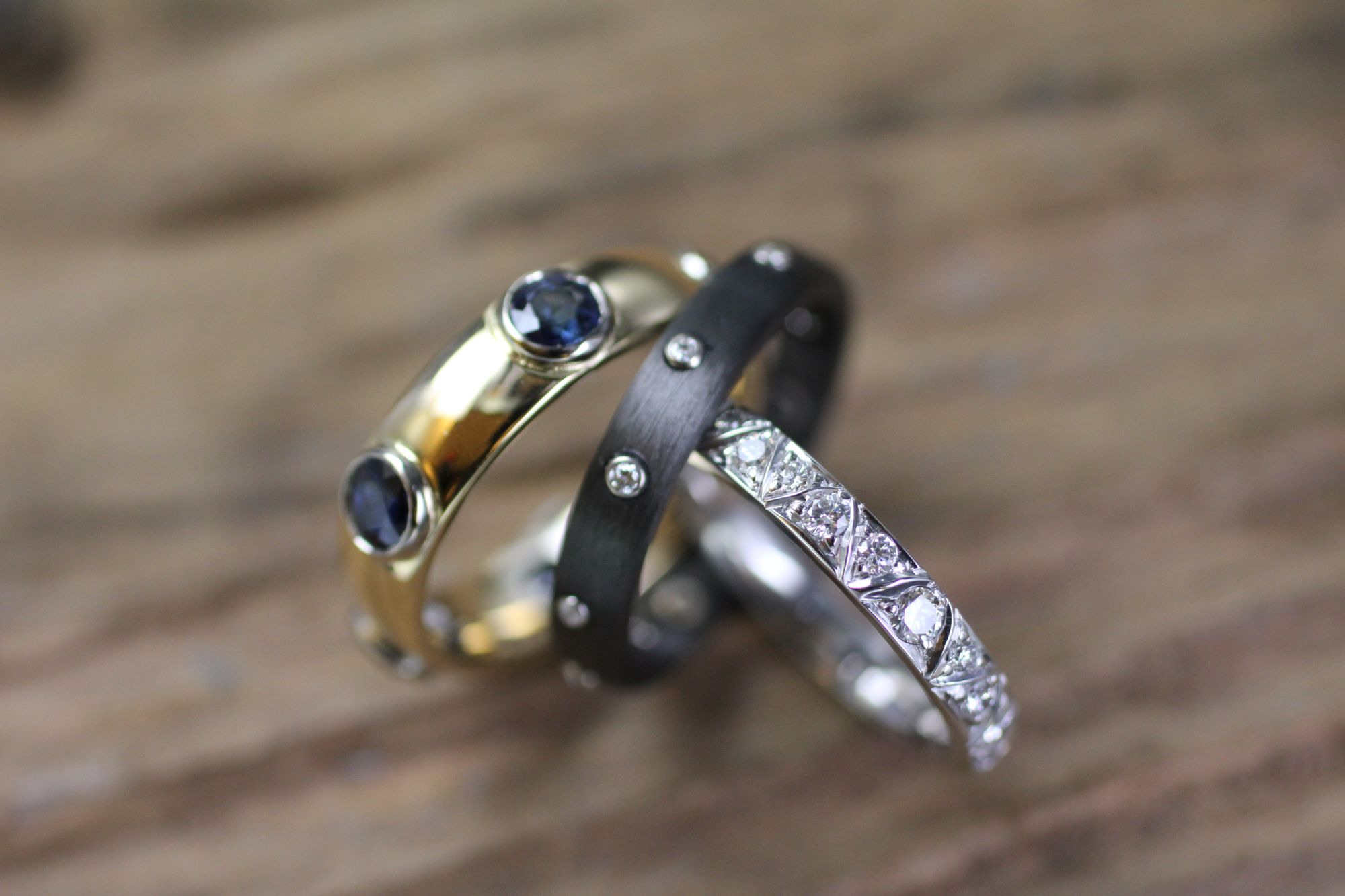 Ringe in Carbon und Gold mit Brillanten. Kundenauftrag