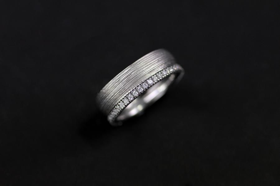 Alliance mit 4 Griffen sehr feine Breite von 1,6 mm mit 46 Brillanten Total 0,38 ct. Weitere Variationen dieses Beisteckringes / Memoire sind nach Absprache möglich.