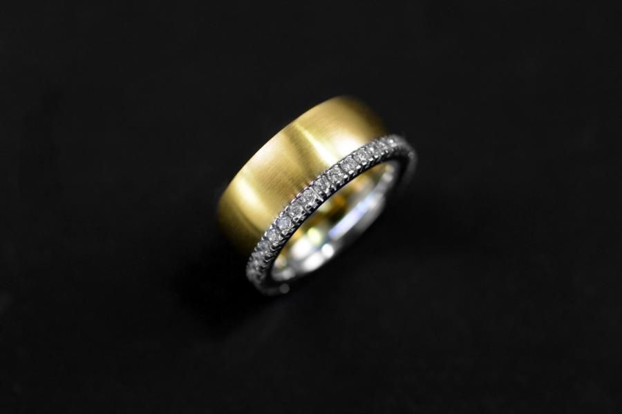 Alliance mit 4 Griffen feine Breite von 2,0 mm mit 37 Brillanten Total 0,68 ct. Weitere Variationen dieses Beisteckringes / Memoire sind nach Absprache möglich.