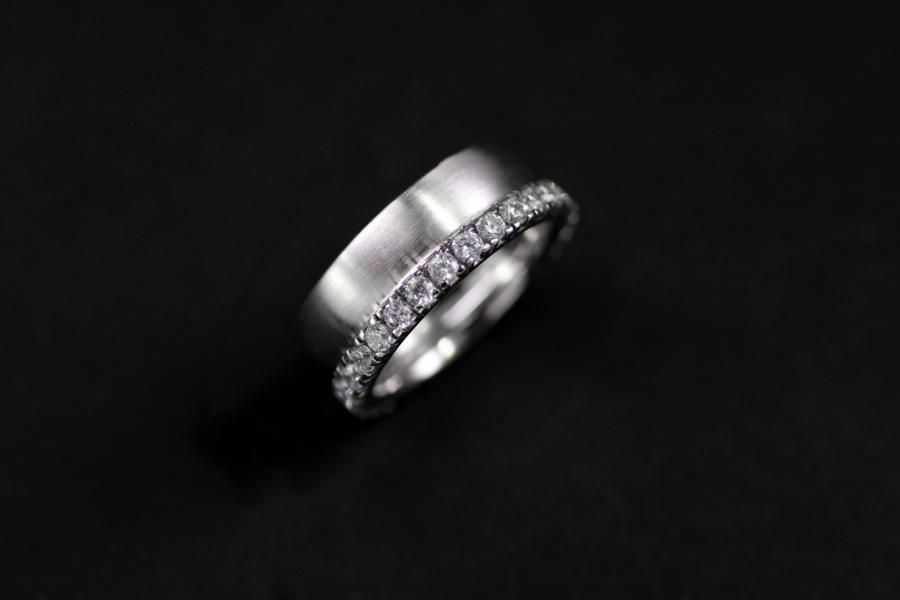 Alliance mit 4 Griffen sehr feine Breite von 2,5 mm mit 29 Brillanten Total 1,02 ct. Weitere Variationen dieses Beisteckringes / Memoire sind nach Absprache möglich.