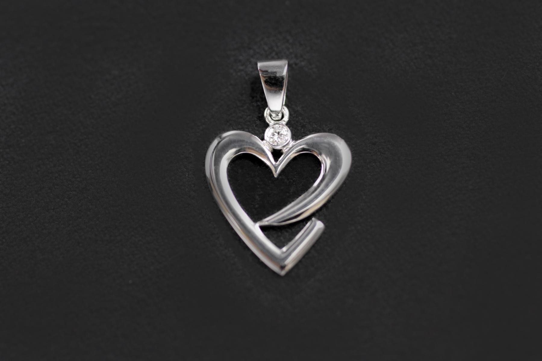 Diesen Herzanhänger gibt es nur einmal. Wir haben ihn individuell nach Kundenwunsch geschmiedet. Er ist aus Weissgold mit einem Diamant.