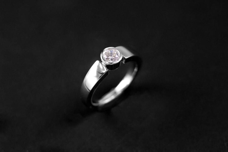 Dieser Verlobungsring ist ein schlichter Klassiker unserer Kollektion. Die Ringschiene verläuft von schmal zu breit, dies verspricht einen angenehmen Tragekomfort. Besonders robust wird dieser Ring dank einer feinen geschlossenen Fassung. Das Weissgold überlässt dem Diamanten seinen glitzernden Auftritt. Wir offerieren ihnen aber auch gerne andere Materialien. Dieser Ring bieten wir mit verschiedenen Steingrössen an: Das abgebildete Modell ist auf dem Gruppenbild das Mittlere und trägt einen 0,50ct. Diamant im Brillantschliff. Fügen Sie die Ringe auf die Merkliste und wir werden ihnen eine Offerte zukommen lassen.