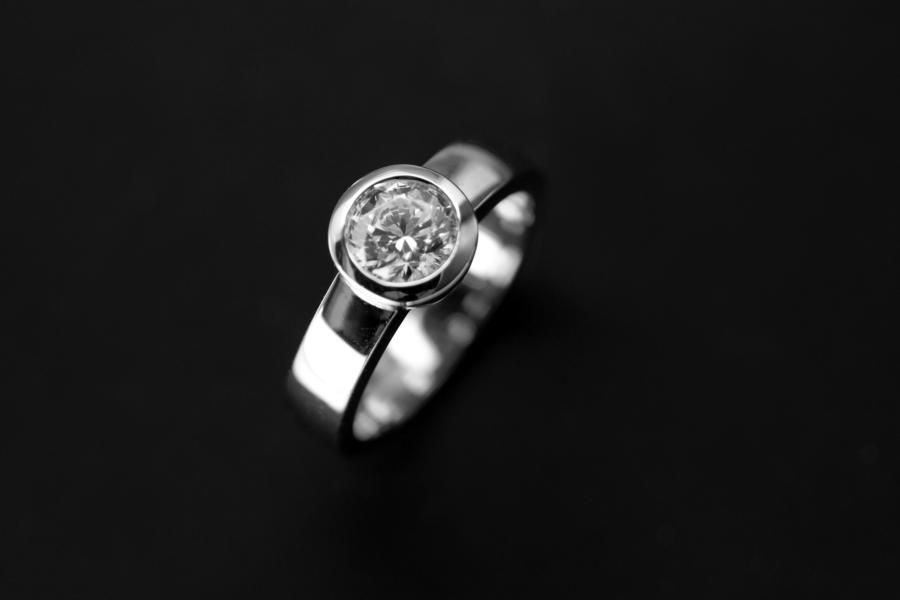 Dieser weissgoldene Verlobungsring ist schlicht und klassisch. Die Ringschiene ist oben leicht gewölbt, und parallel laufend. Der Brillant wird von einer robusten konischen Fassung gehalten. Dieser Ring bieten wir in verschiedenen Dimensionen an: Das abgebildete Modell ist auf dem Gruppenbild ganz links und trägt einen 1,0ct. Diamant im Brillantschliff. Wir offerieren ihnen aber auch gerne andere Materialien und Grössen. Fügen Sie die Ringe auf die Merkliste und wir werden ihnen eine Offerte zukommen lassen.