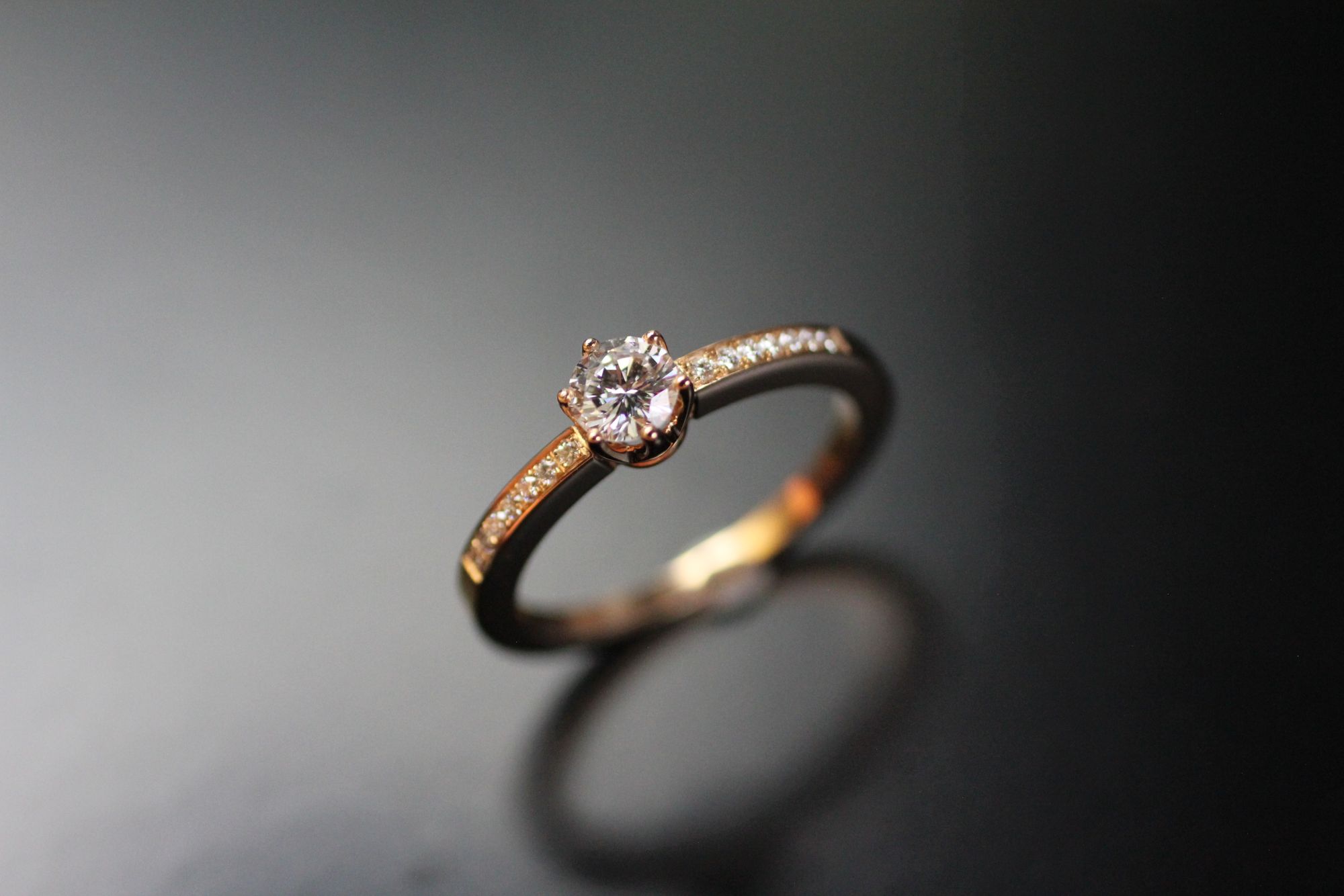 Pavé Verlobungsring in Rotgold 750, 15 Brillanten Total 0.43 ct