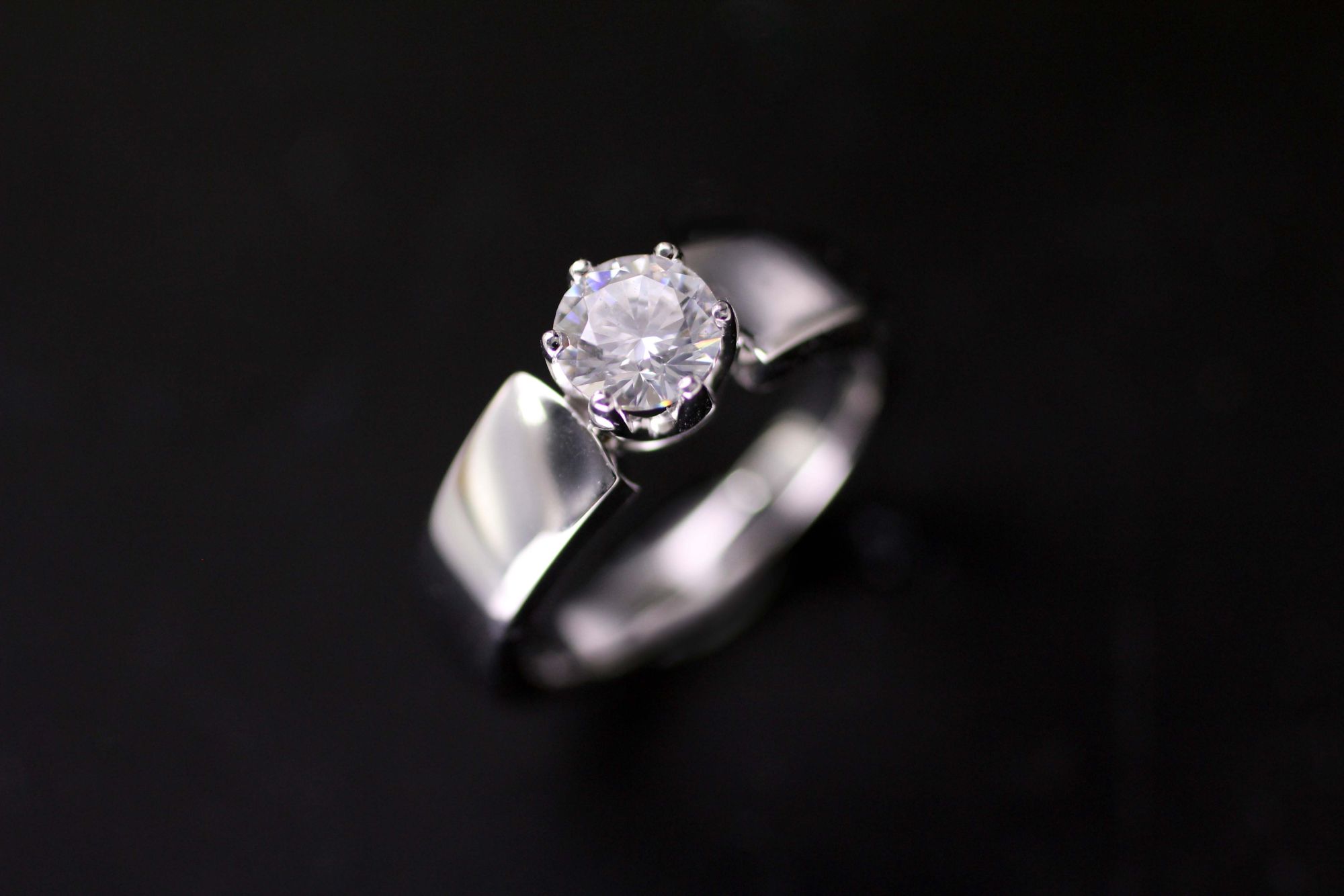 Dieser Verlobungsring ist ein schlichter Klassiker unserer Kollektion. Die Ringschiene verläuft von schmal zu breit, dies verspricht einen angenehmen Tragekomfort. Eine zierliche Krönchenfassung mit 6 Griffen hält den Brillanten sicher fest. Das Weissgold überlässt dem Diamanten seinen glitzernden Auftritt. Dieser Ring bieten wir mit verschiedenen Steingrössen an: Das abgebildete Modell ist auf der Übersicht das zweite von links und trägt einen 0,75ct. Diamant im Brillantschliff. Fügen Sie die Ringe auf die Merkliste und wir werden ihnen eine Offerte zukommen lassen.
