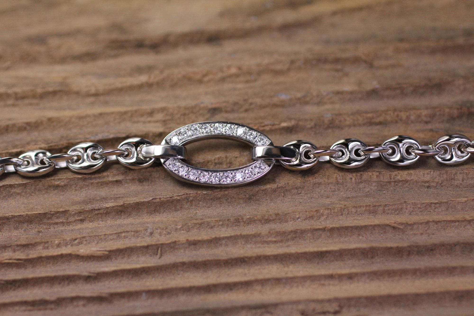 Weissgold Armband mit ovalem Brillant-Element ausgefasst. Kundenauftrag.