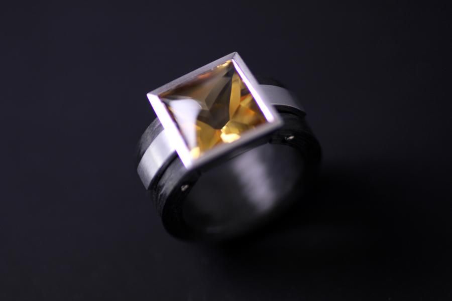 Damenring aus unserer AXIS Kollektion mit Carbon Weissgold und einem Citrin.