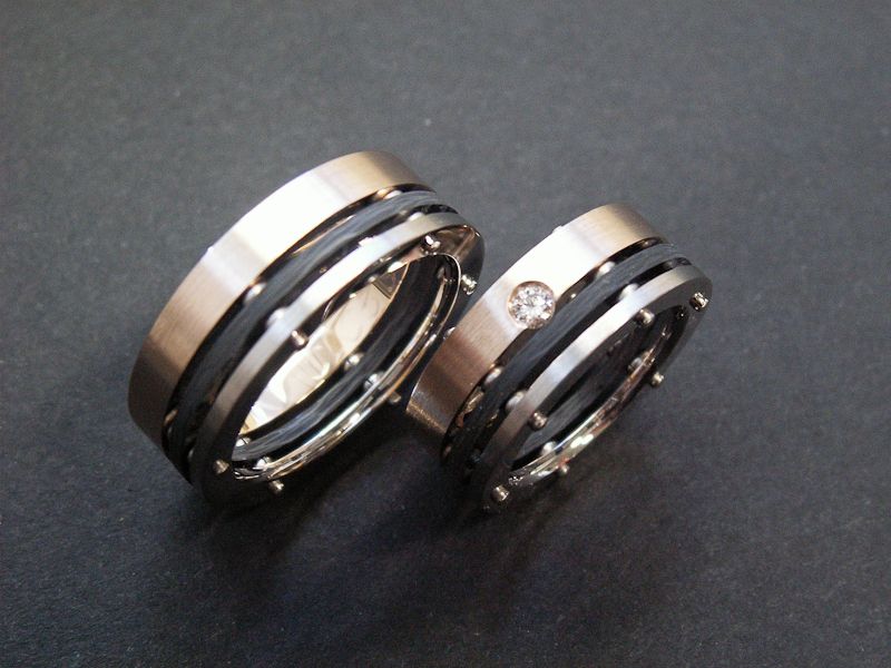 Axis-Eheringe, Rot/Weissgold mit Carbon und Brillant