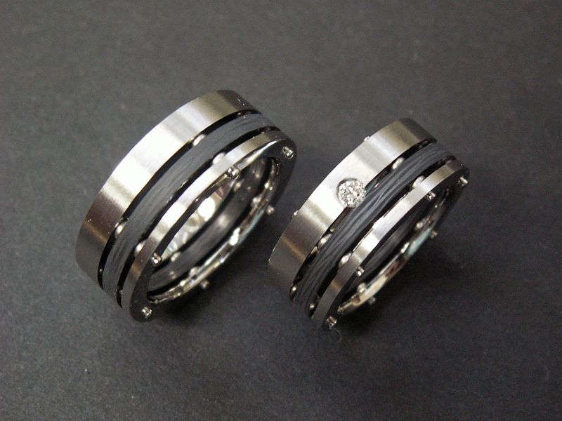 Axis-Eheringe, Weissgold L/S mit Carbon und Brillant