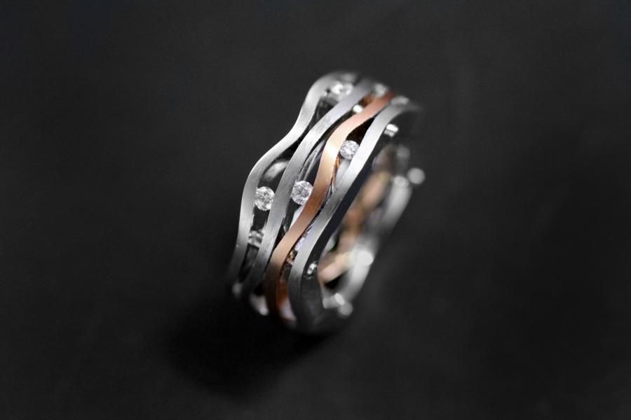 AXIS Ring "Rapunzel" 4 Teilig aus Rot/ Weissgold. Mit weissen und cognac farbigen Brillanten versenkt gefasst.