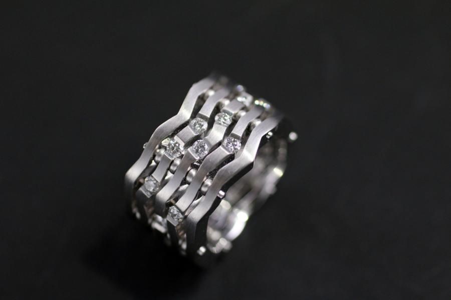 AXIS Ring "Gefaltet" aus Weissgold. Mit Brillanten versenkt gefasst.