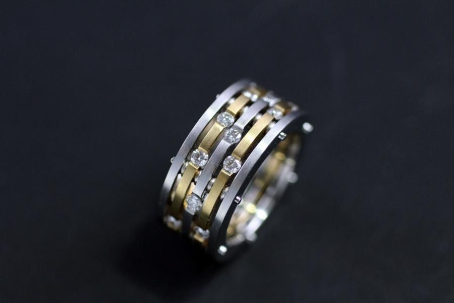 AXIS Ring "Rippen" gefertigt aus Gelb/ Weissgold. Mit Brillanten in den Rippen versenkt gefasst.