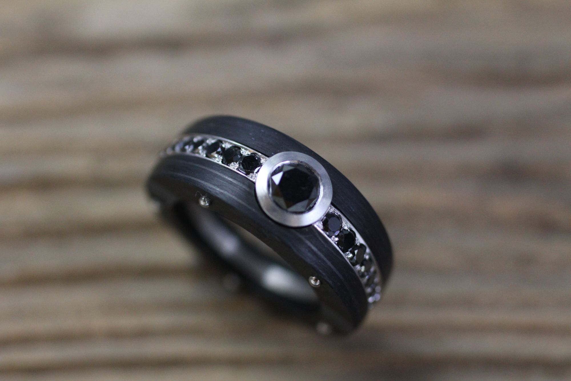 Damenring AXIS Carbon und Weissgold weisse Brillanten Pavé und schwarzer Brillant.