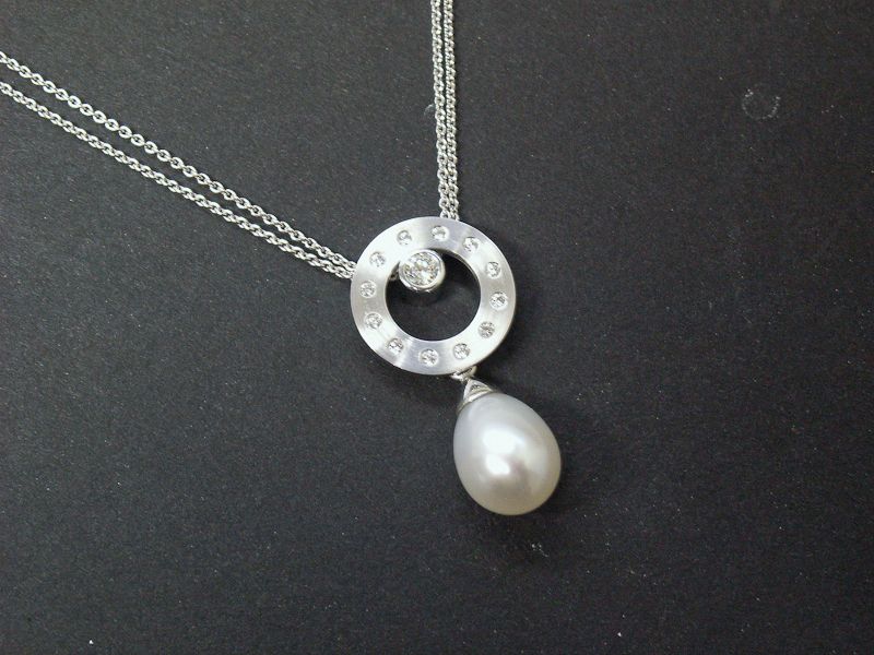Collier Weissgold Kreis mit Brillanten, Süsswasser Z.-Perle
