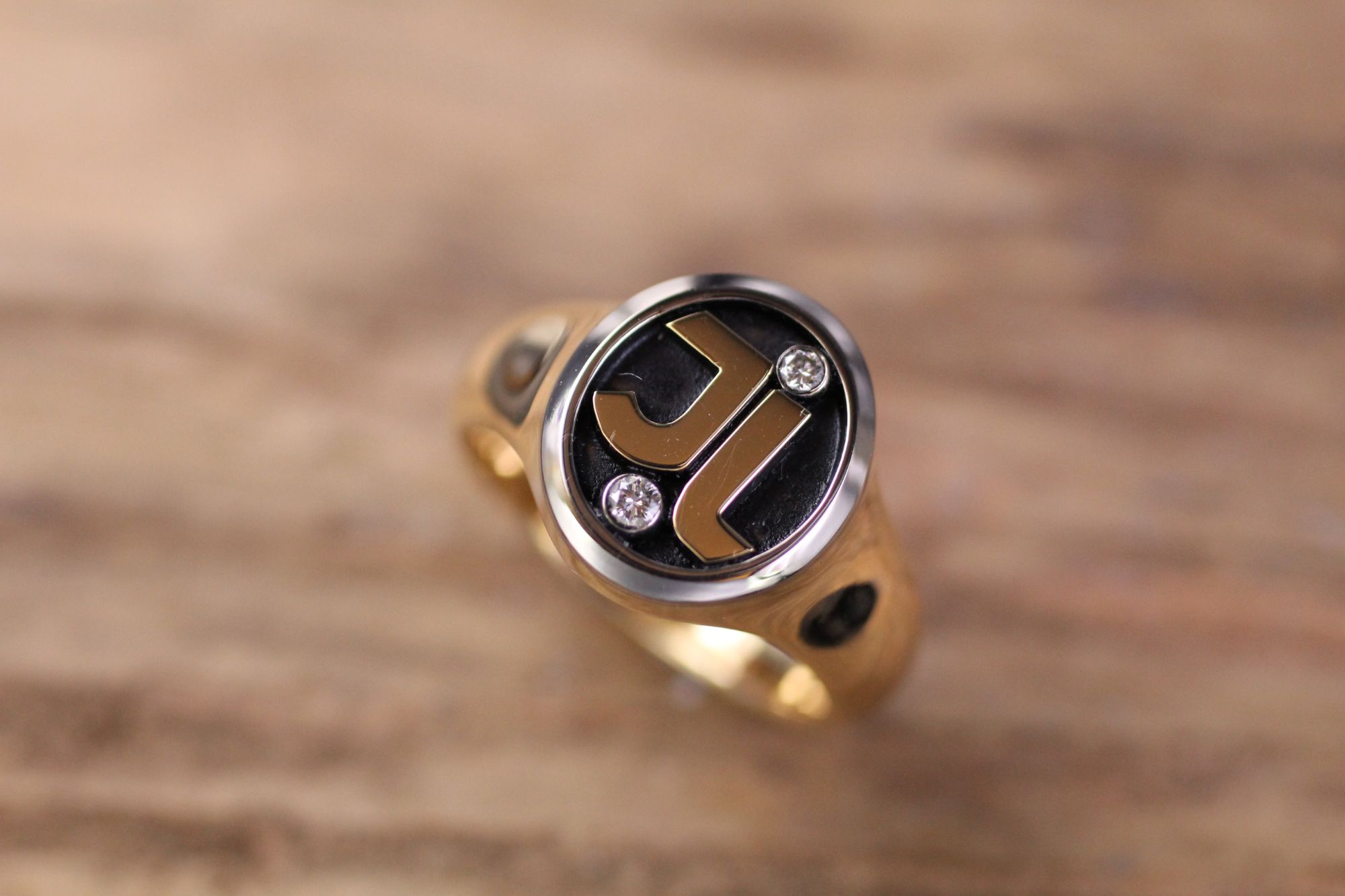Damenering Gelb-Weissgold Initialen und Brillanten. Kundenauftrag