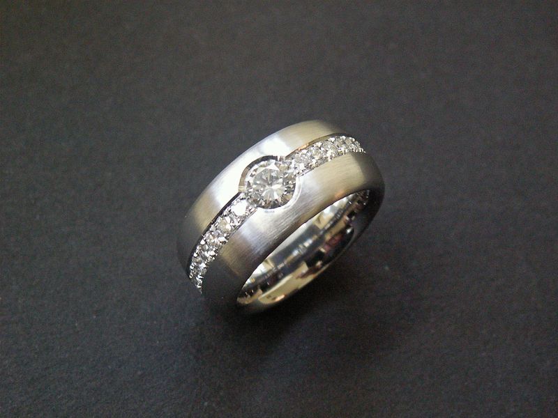 Damenring Weissgold gerundet, grosser Mittelstein und pavé-Brillanten
