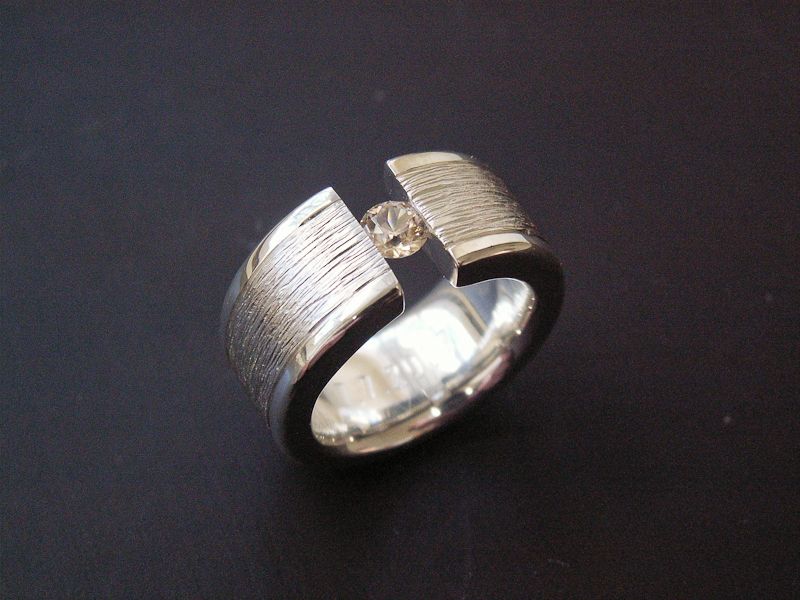 Kundenauftrag Damenring Silber mit 1 cognac-Brillanten
