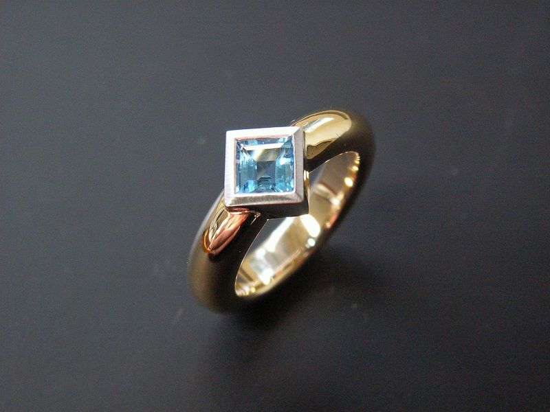 Damenring Weiss/Gelbgold mit Topas