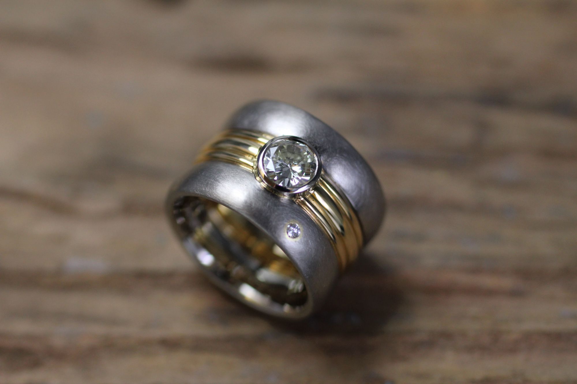 Bicolor Damenring, XL breit mit 1 Brillanten. Kundenauftrag