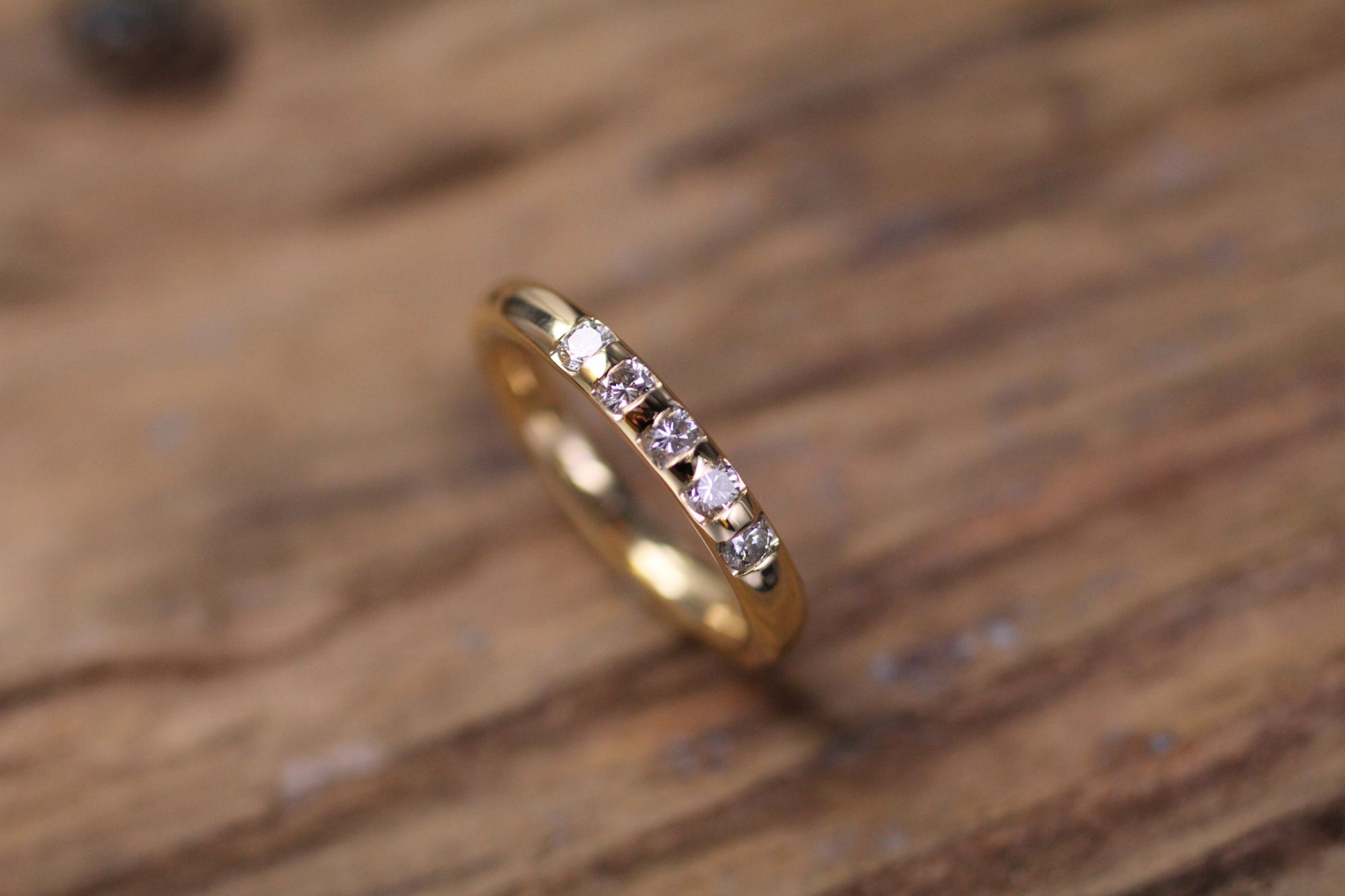 Gelbgold Damenring mit 5 Brillanten in Linie Steggefasst.