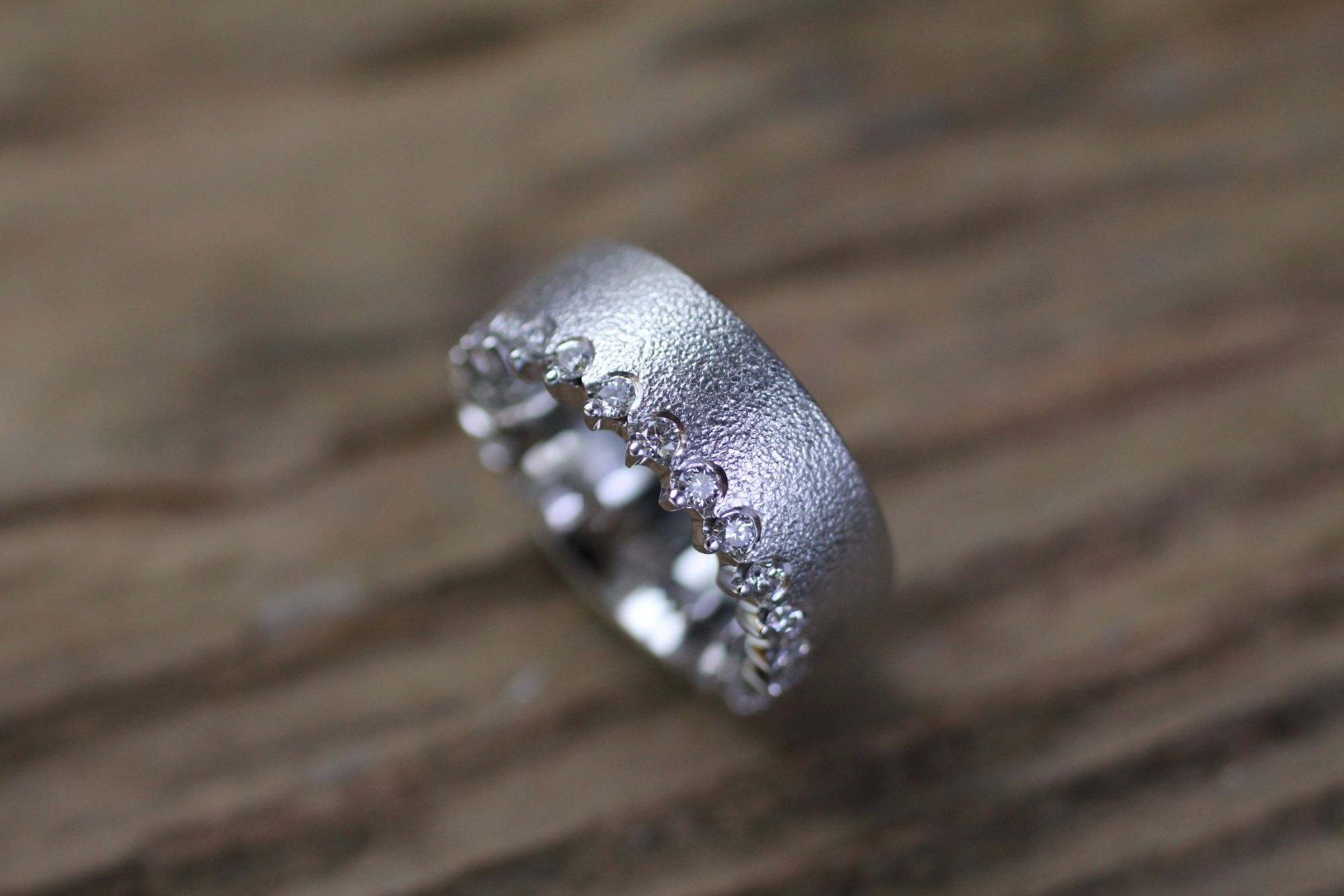 Weissgold Damenring, Alliance Kornenfassung, Brillanten. Kundenauftrag