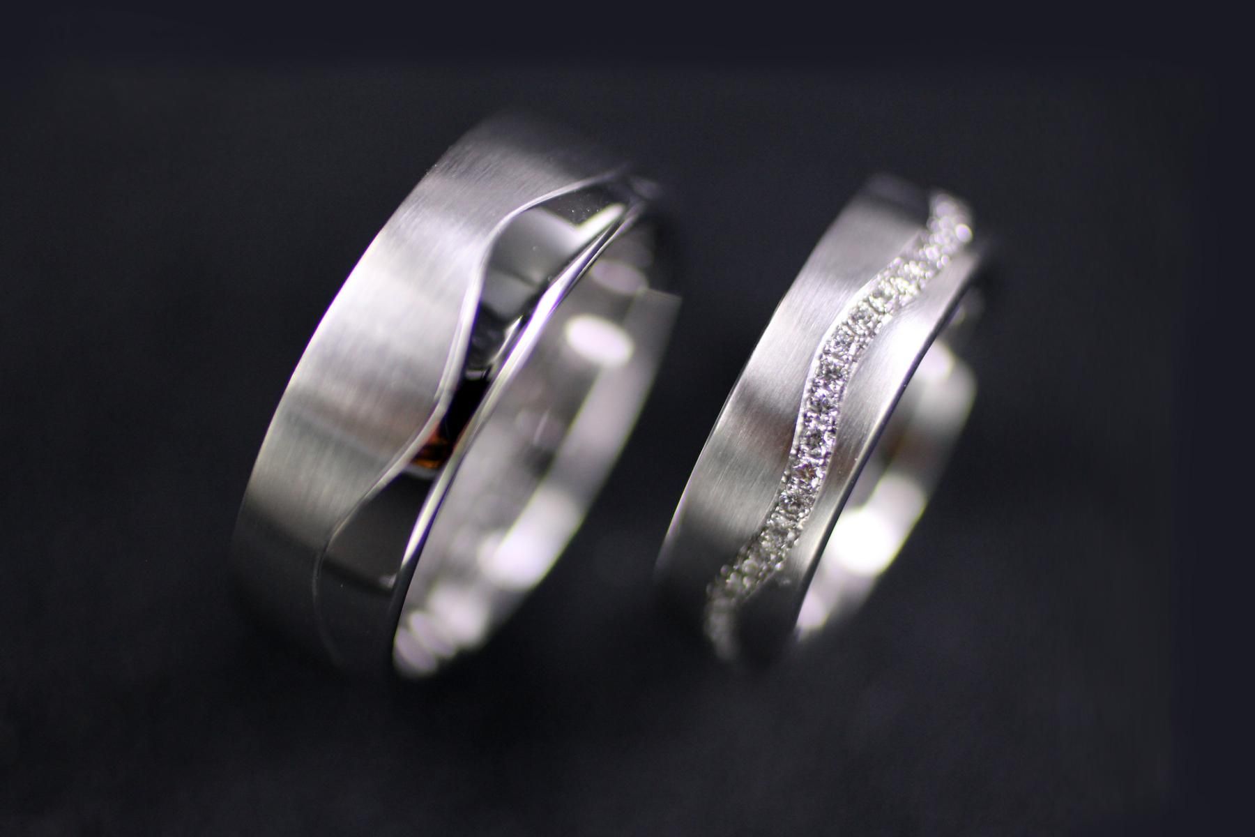 Eheringe in Weissgold mit matten und glänzigen Elementen. Nach Kundenwunsch hergestellt.
