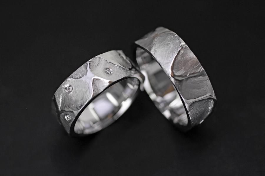 Die Eheringe Sanddüne sind aus Weissgold gearbeitet. Ihr Grundkörper ist massiv, von einer mittleren Breite und oben flach. Spannend ist die glatte Struktur welche sanft geschwungen den Ring umspannt und an eine Sanddüne erinnert. Im Damenring sind 9 Brillanten eingearbeitet die glitzern wie verborgene Schätze im Sand. Weitere Variationen dieser Trauringe sind nach Absprache möglich. Fügen Sie die Ringe auf die Merkliste und vergleichen Sie sie mit den anderen Schmuckstücken.