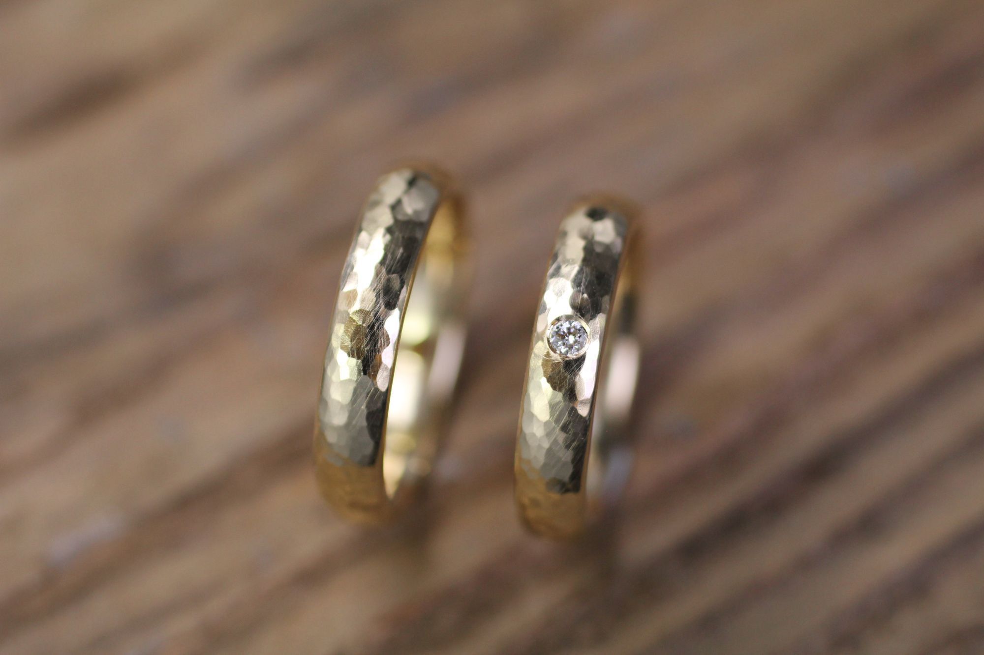 Eheringe in Gelbgold Hammerschlag leicht glänzend.