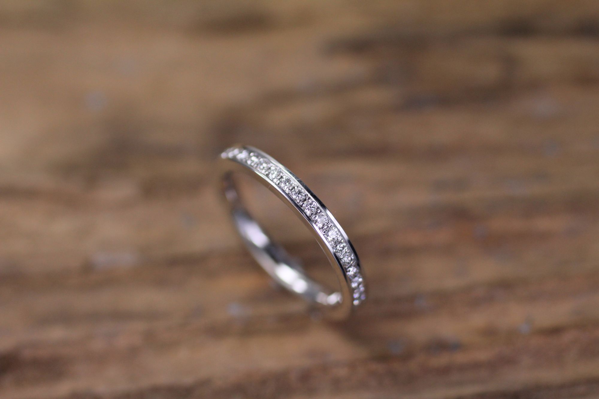Feiner Weissgold Memoire-Ring mit pavégefassten Brillanten.