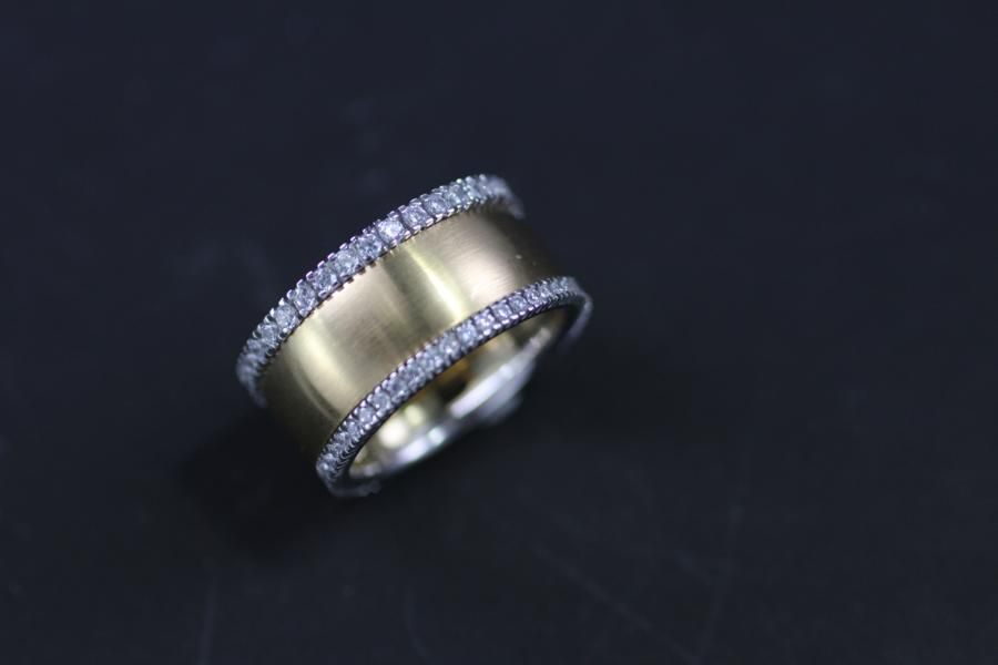Breiter gewölbter Gelbgoldring mit zwei Alliancen erweitert.