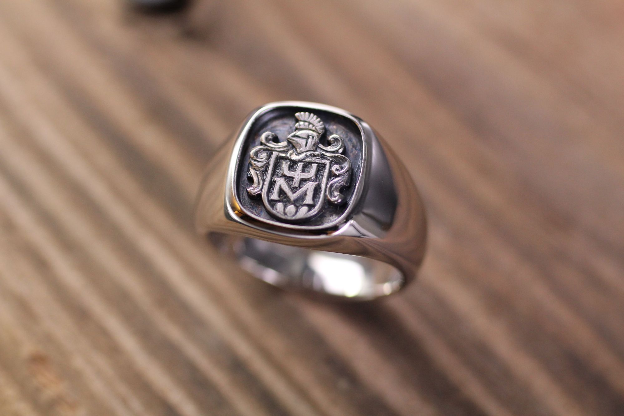 Herrenring in Weissgold, Antik mit Wappen. Kundenauftrag