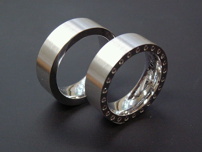 Hochzeitsringe Weissgold flach mit seitlichen Brillanten