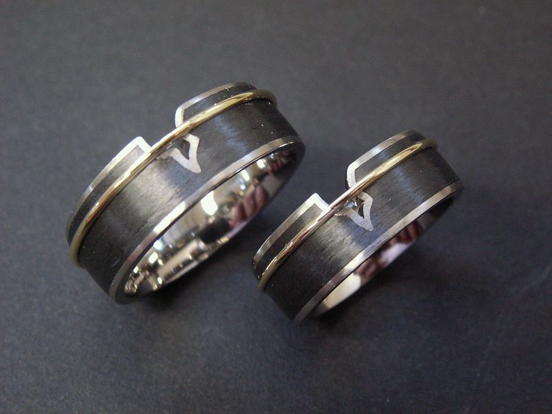 Hochzeitsringe Weissgold, Carbon und Gelbgold