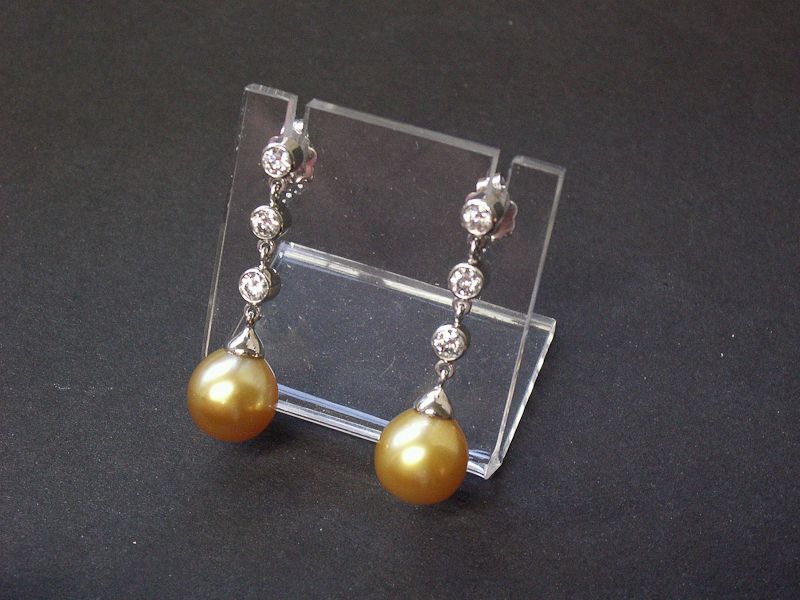 Ohrhänger Weissgold mit Brillanten, goldene Südsee Z.-Perle
