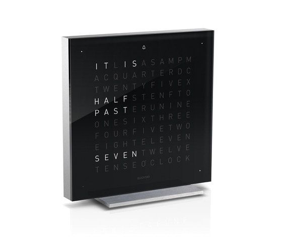 Die Tischuhr mit Alarmfunktion Qlocktwo Black Ice Tea verfügt über ein kompaktes Format. Die Worte wechseln alle fünf Minuten. Vier Leuchtpunkte sorgen für genaue Minutenanzeigen.