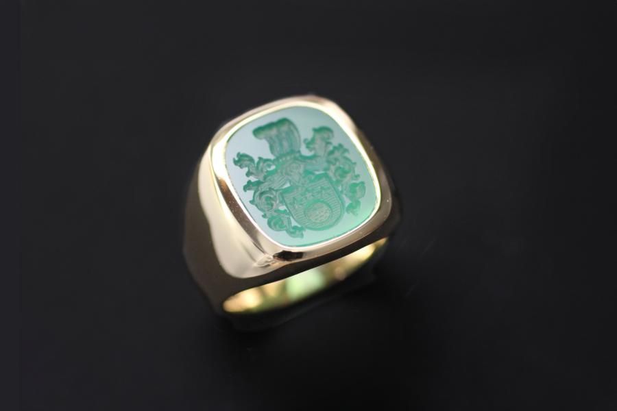 Auftrag nach Kundenwunsch mit einem grünem Stein und eingraviertem Siegel.
