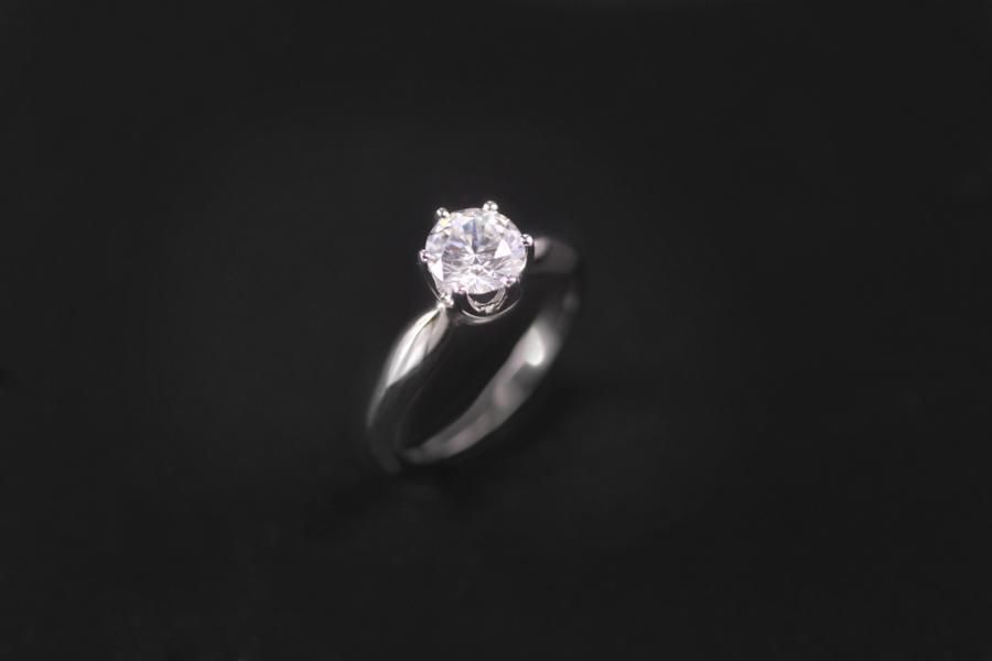 Solitär mit Kronenfassung. Die Schiene ist Tropfenförmig und fein zulaufend. Weitere Variationen dieses Solitär Ringes sind nach Absprache möglich.