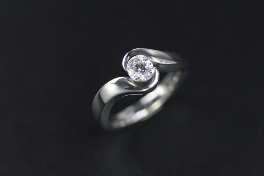 Dieser Solitaire ist mit seinem Doppelschwung etwas besonderes in unserer Kollektion. die Ringschiene schmiegt sich sanft um den Brillanten ohne ihn ein zu sperren. Besonders robust wird dieser Ring dank einer von oben unsichtbaren Fassung. Das Weissgold überlässt dem Diamanten seinen glitzernden Auftritt. Wir offerieren ihnen aber auch gerne andere Materialien. Dieser Ring bieten wir mit verschiedenen Steingrössen an: Das abgebildete Modell ist auf der Übersicht ganz links und trägt einen 0,50ct. Diamant im Brillantschliff. Fügen Sie die Ringe auf die Merkliste und wir werden ihnen eine Offerte zukommen lassen.