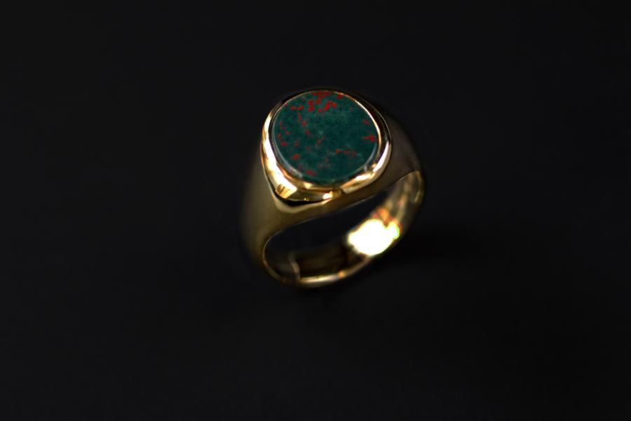 Steinring ovale Platte Heliotrop Nr. 12