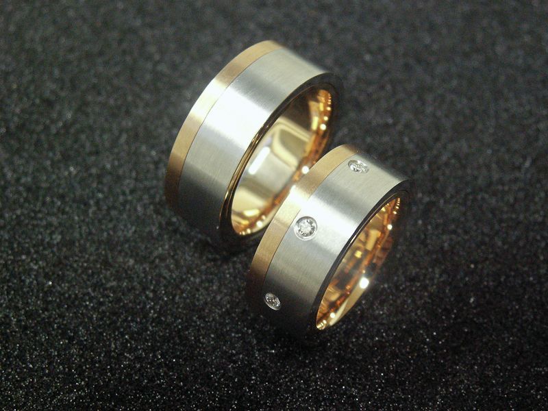 Trauringe Weiss/Rotgold flach mit Brillanten