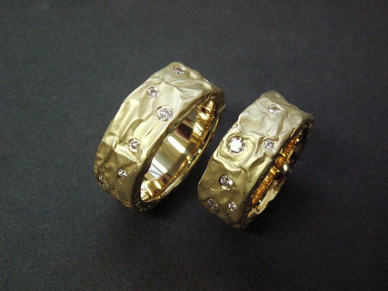 Trauringe Gelbgold gefaltet doppelt mit Brillanten