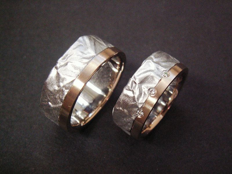 Trauringe Weiss/Rotgold gefaltet und flach, Brillanten