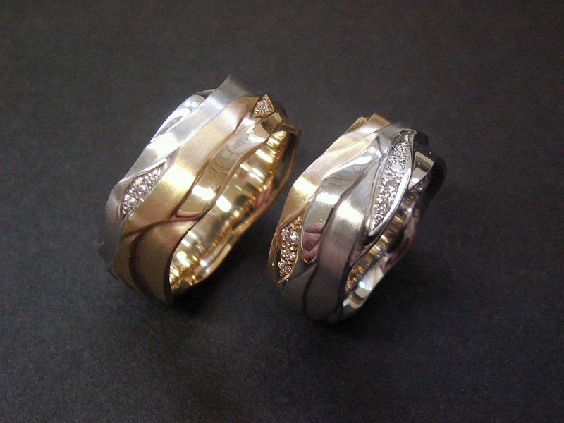 Trauringe wellen Gelb/Weissgold mit Brillant-pavés