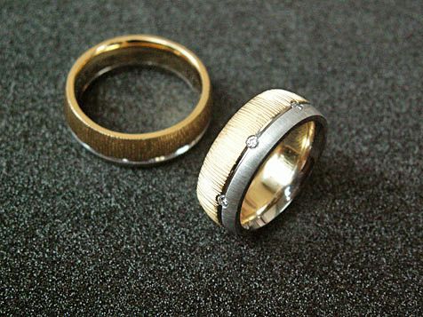 Trauringe querstreifen / flach in Gelb/Weissgold mit Brillanten