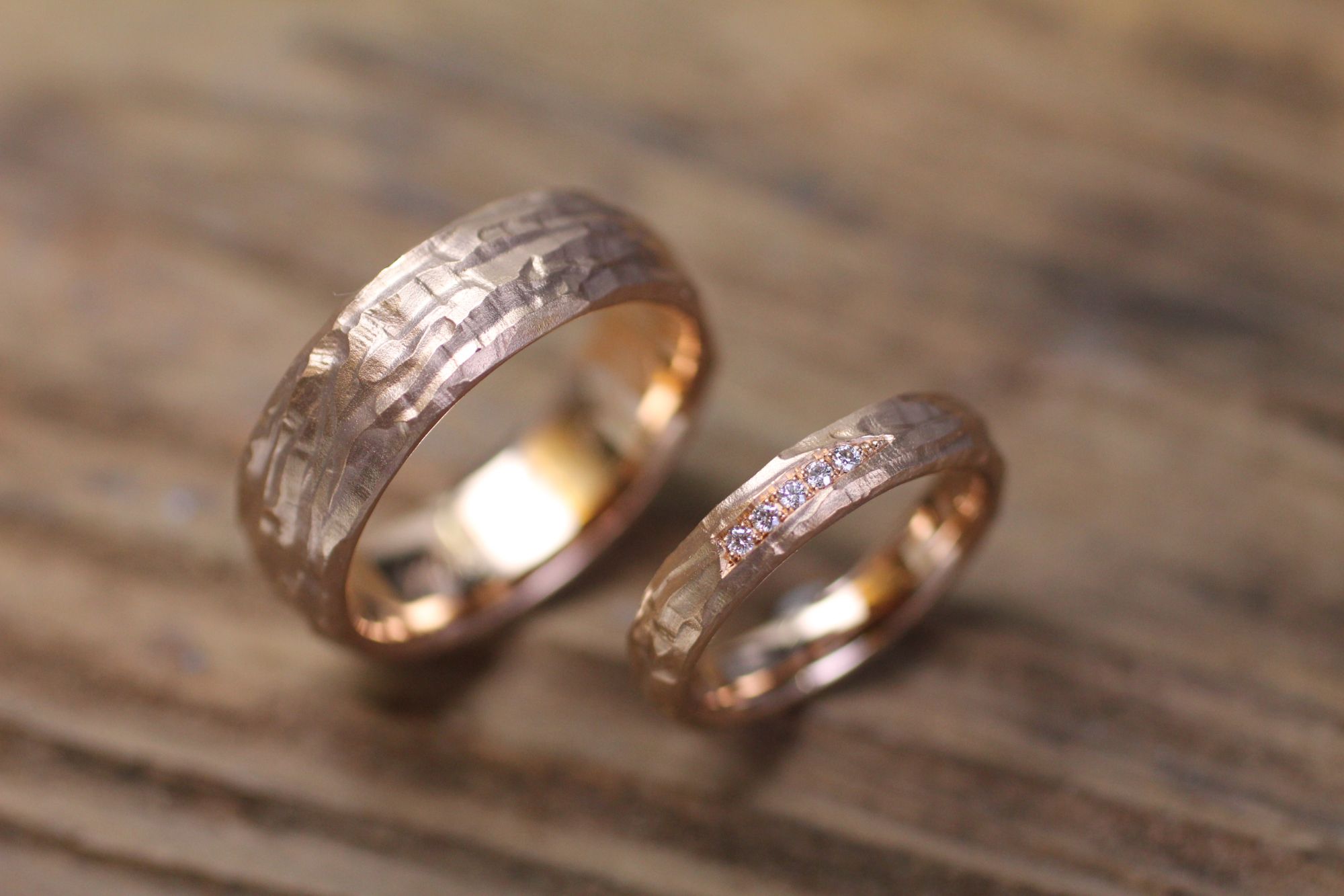 Hochzeitsringe Gletscher in Rotgold mit Brillanten.