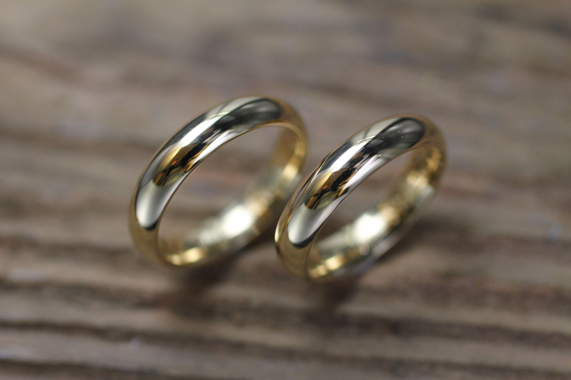 Klassische Trauringe in Gelbgold poliert, Kuppelform.