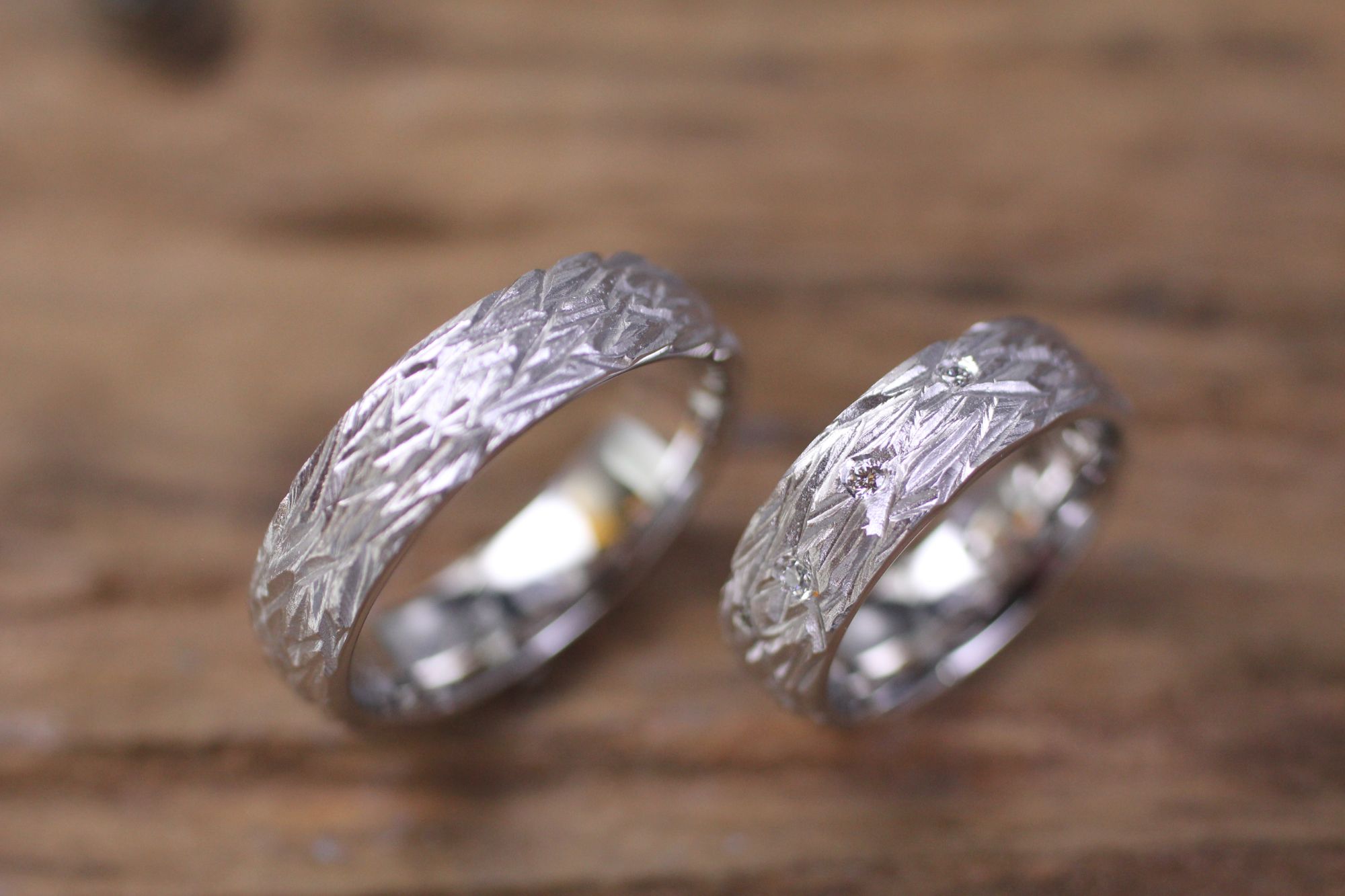 Trauringe Weissgold Vogelnest mit einzelnen Brillanten.