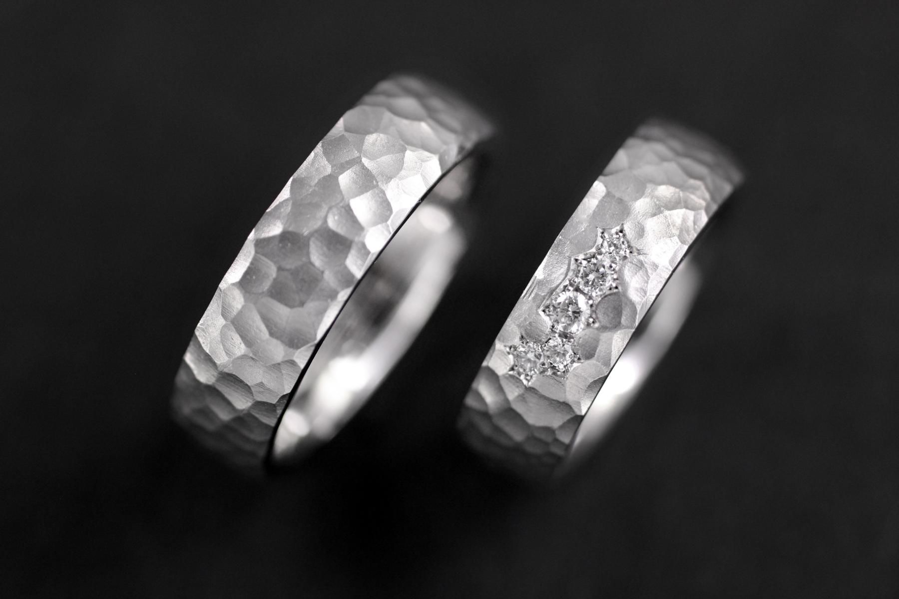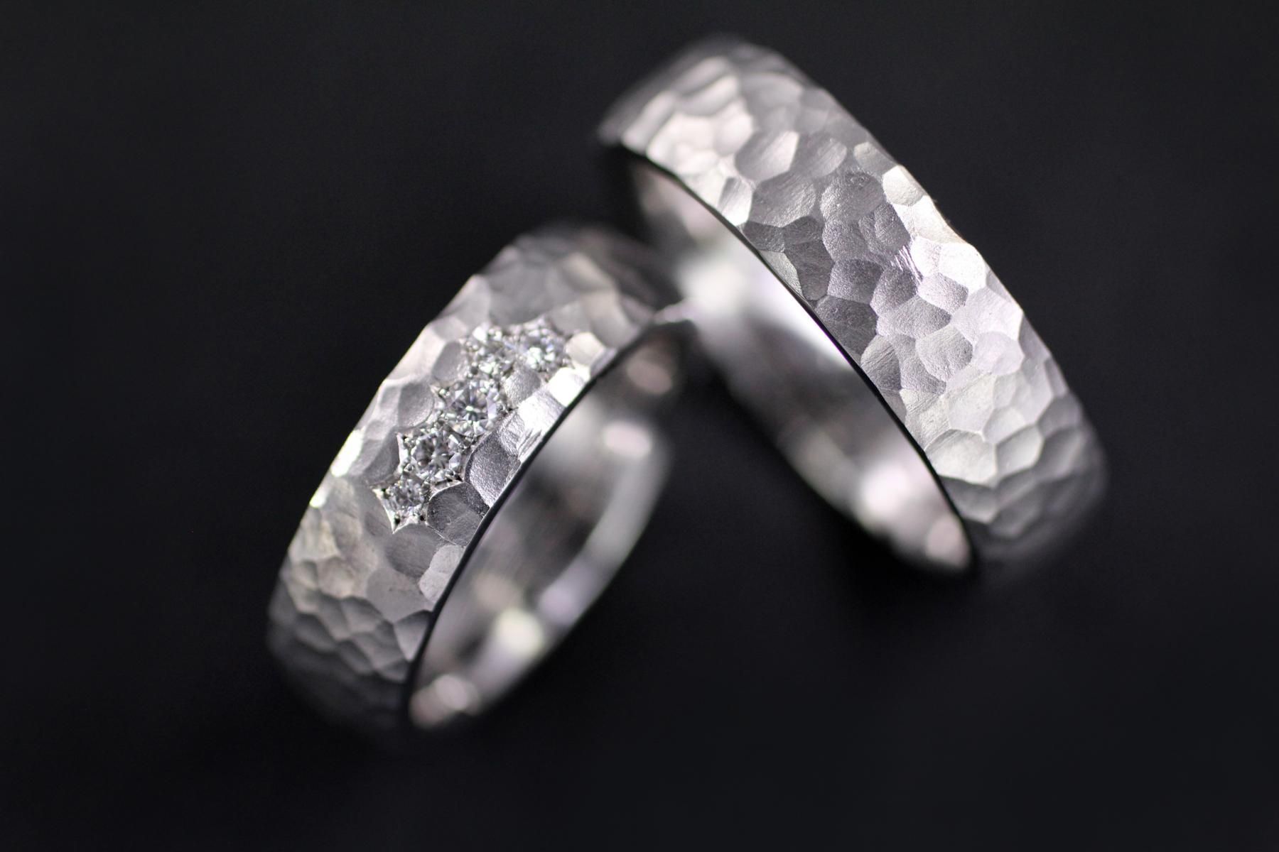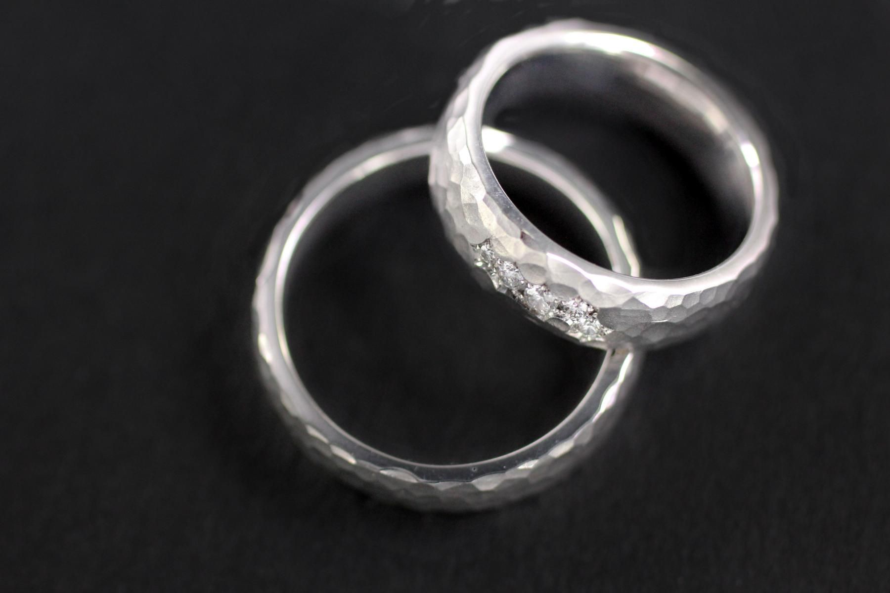 Die Trauringe "Bienenwaben" sind aus Weissgold gefertigt. Die Eheringe haben eine gewölbte, leichte Ringform. Die seidenmatte Struktur, wirkt wie fein gehämmert. 3 Segmente mit Brillanten zieren die Oberfläche des Damenringes. Elegante Trauringe mit schöner Struktur und geschmeidiger Form. Weitere Variationen dieser Trauringe sind nach Absprache möglich. Fügen Sie die Ringe auf die Merkliste und vergleichen Sie sie mit den anderen Schmuckstücken.