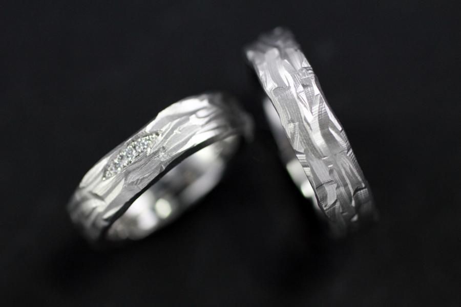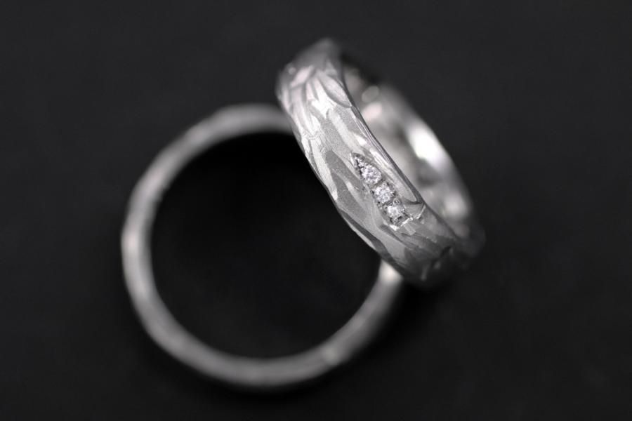 Diese Trauringe sind individuell geschnitzt aus Weissgold. Ihr Ringkörper ist leicht und von sehr hohem Tragekomfort. Die Oberfläche wurde bis über die Seite hinweg tief Strukturiert wie die Eisschichten eines Gletschers. Der Damenring wurde bei unserem Modell zusätzlich Rundherum mit 3 Brillanten in Dreiergruppen pavé gefasst. Eindrucksvolle Trauringe mit spannender Struktur. Weitere Variationen dieser Trauringe sind nach Absprache möglich. Fügen Sie die Ringe auf die Merkliste und vergleichen Sie sie mit den anderen Schmuckstücken.