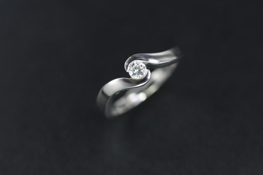 Schwungvoller Verlobungsring mit massiver Schiene. Weitere Variationen dieser Solitär Ringes sind nach Absprache möglich.